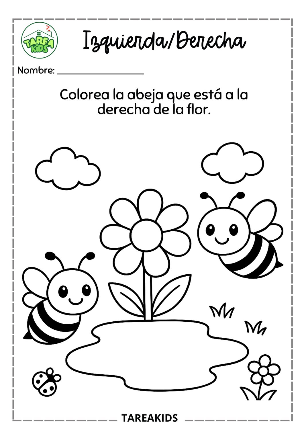 🧭 2. Izquierda / Derecha – Abeja y flor