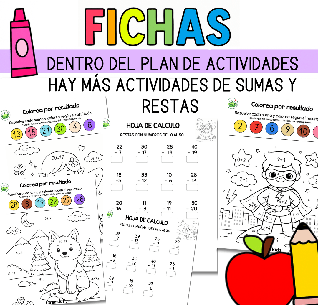 Si te ha gustado esta actividad dentro del plan de actividades, hay un pack completo con más de 60 páginas para realizar sumas y restas divertidas.