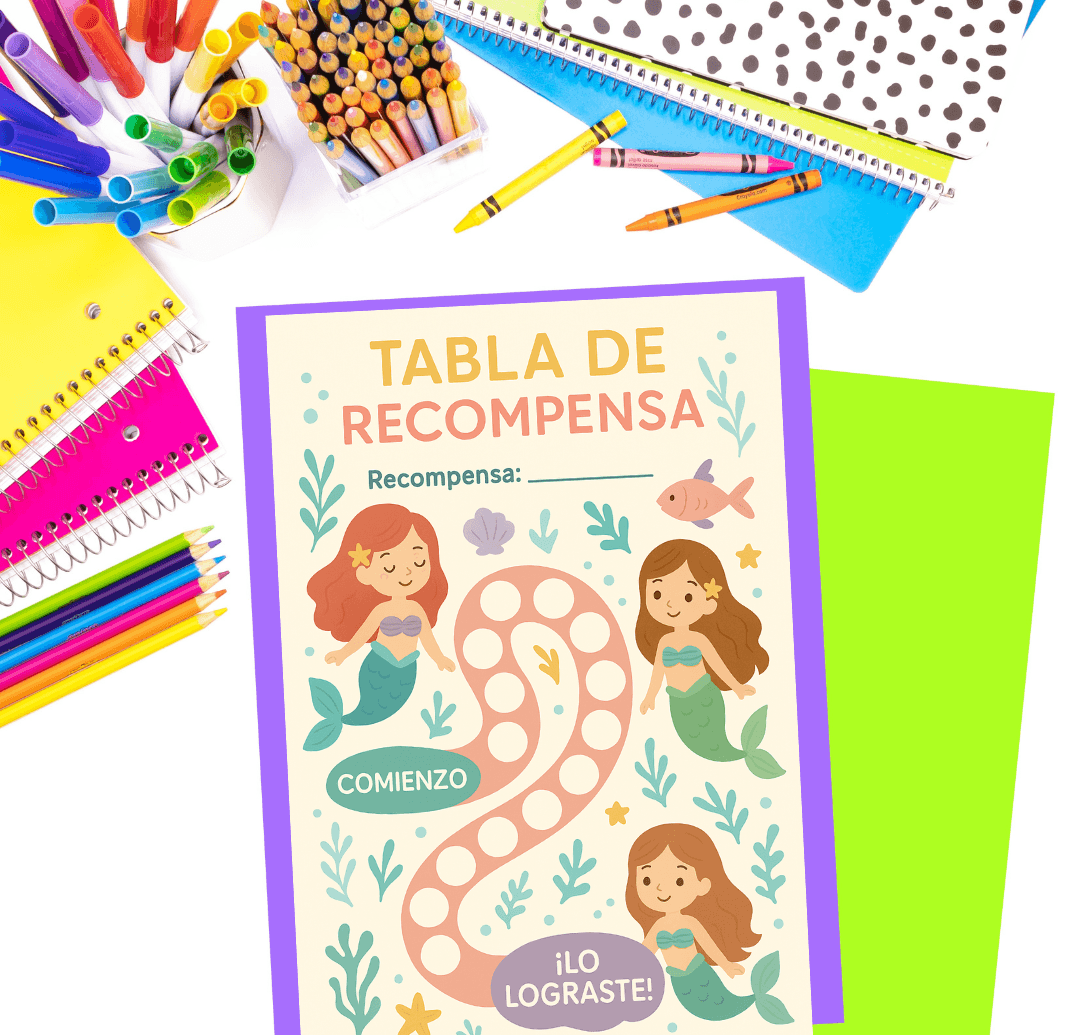 ¿Buscas una forma mágica y divertida de motivar a tus hijos en casa? ¡Esta tabla de recompensas con temática de sirenas es perfecta para acompañarte en la crianza con refuerzo positivo! 🧜♀️✨
