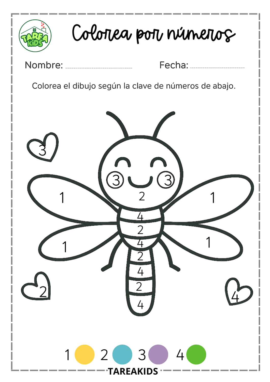 Las fichas “Colorea por números” de Tarea Kids son perfectas para ello: ayudan a los peques a desarrollar la atención, la coordinación y el reconocimiento de colores mientras se divierten pintando.