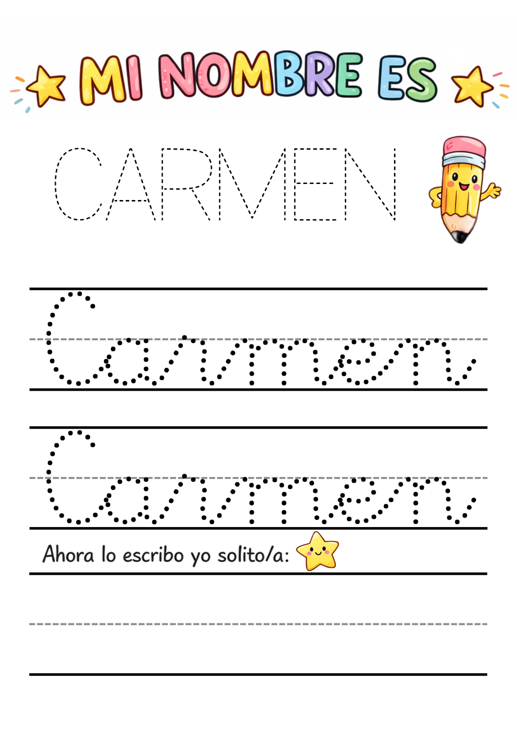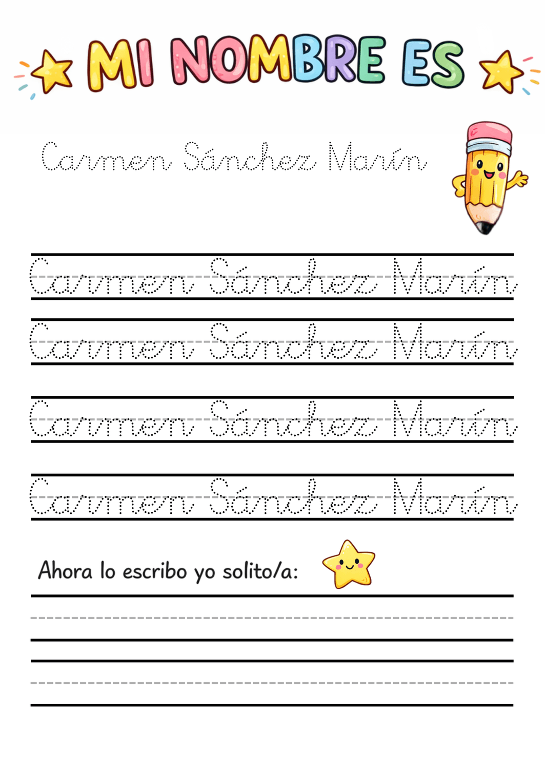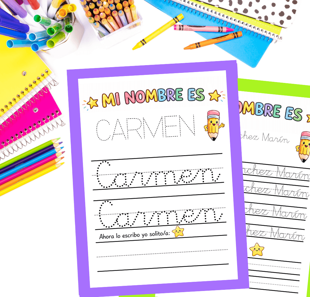 Por eso hoy quiero compartir contigo plantillas gratuitas para escribir el nombre, diseñadas especialmente para niños y niñas de Educación Infantil y primeros cursos de Primaria.