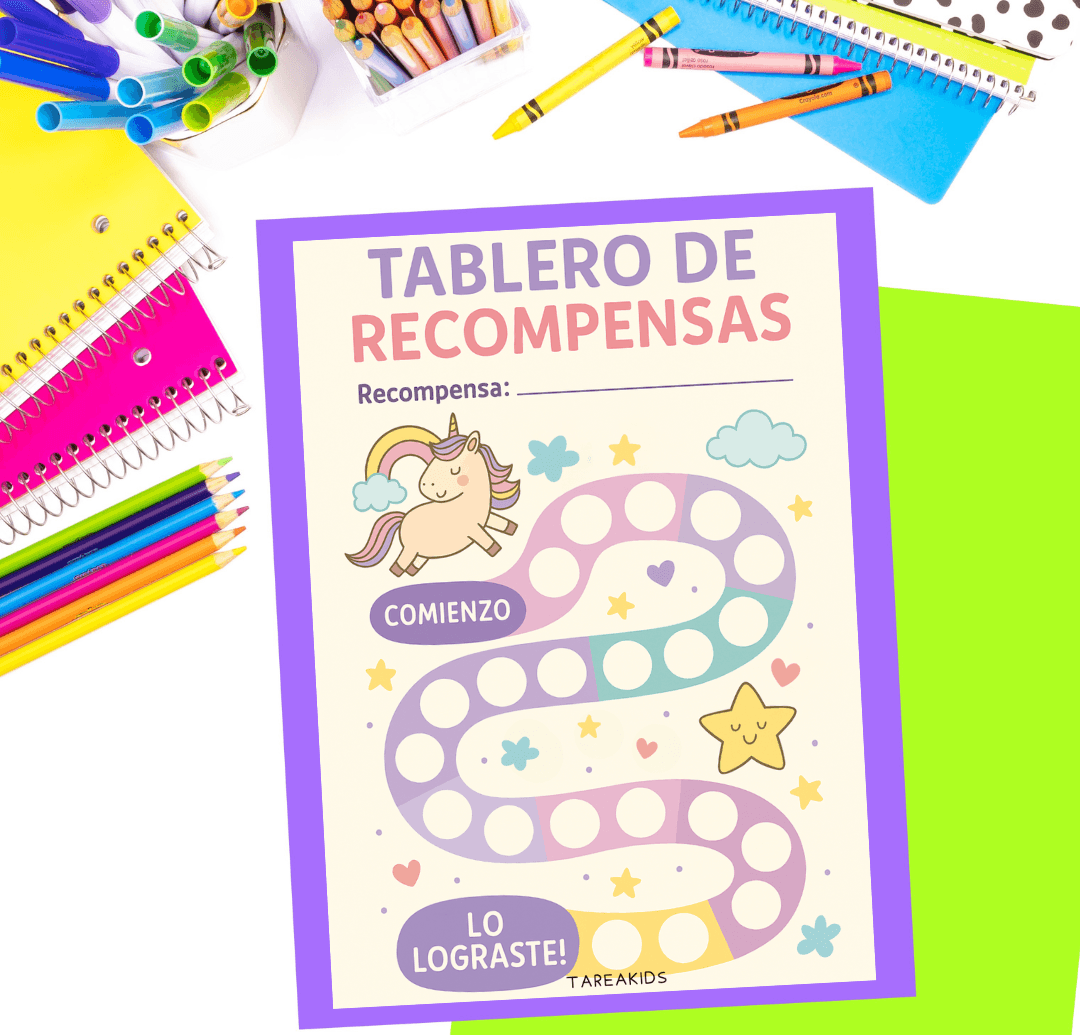 En esta sección de Tarea Kids te ofrecemos una colección de tableros de recompensas imprimibles para motivar a los niños en sus rutinas, responsabilidades y logros diarios.
